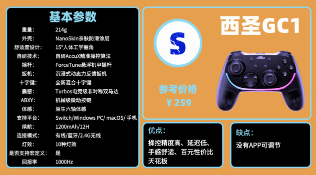游戏手柄推荐2026精品1、高性价比的西圣GC1游戏手柄——259元