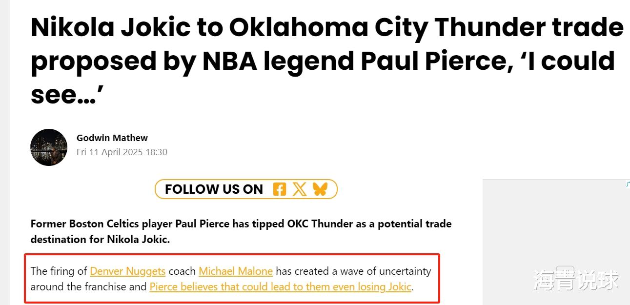 掘金队虽然此前已经拿到了总冠军,而约基奇也是目前联盟最强的球员之一,但是他们在本赛季的表现并不算太好,而他们在不久前解雇了总经理和主教练马龙,也给球队的未来萌生了很多不确定性。