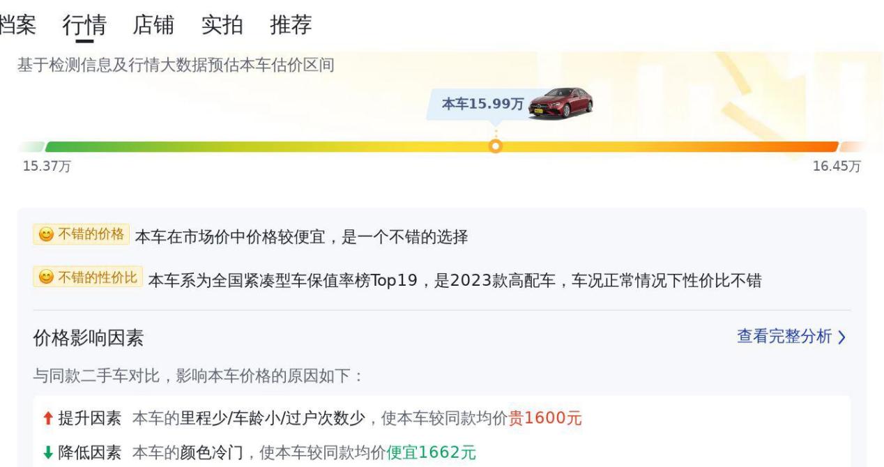 我们的主角是一辆2023年7月上牌的奔驰A 200 L 运动轿车时尚版,红色车身,行驶里程仅1.5万公里,无过户记录,原价26.48万,如今二手车市场报价15.99万。这个价格,无疑是它最大的吸引力所在。要知道,奔驰A级作为豪华品牌的入门级车型,新车落地也要二十多万,如今不到两年,价格几乎打了六折,对于预算有限却又渴望拥有豪华品牌体验的消费者来说,无疑是一个巨大的诱惑。