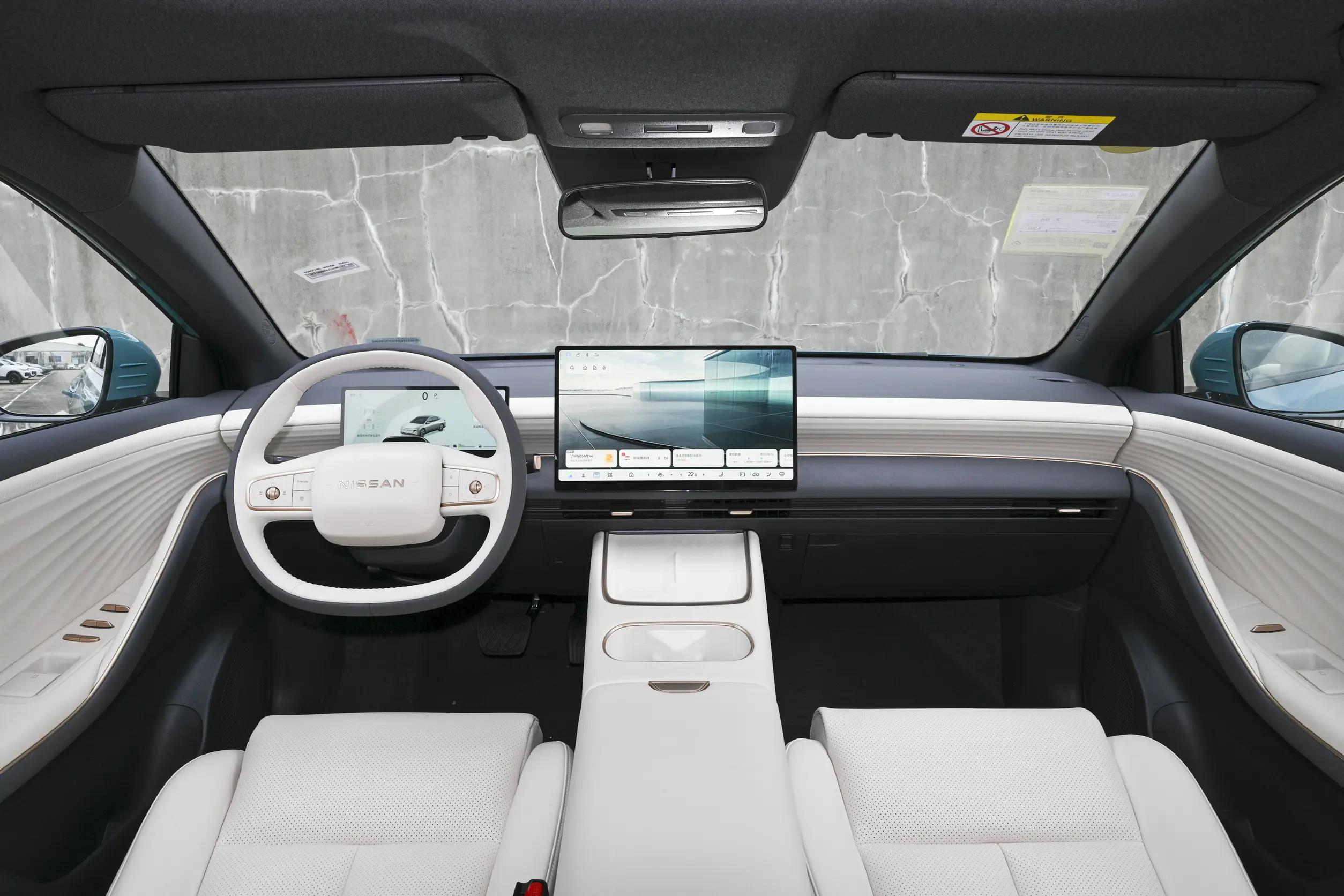 座椅方面,虽然Pro+版本相比更高配的Max+少了那个带按摩功能的AI零压云毯座椅 ,但日产在座椅填充物上的功底还在,坐上去依然有那种陷入感,支撑性也不错。而且这车还有个挺贴心的配置,叫全域智能防晕车系统2.0 。家里有老人或者小孩坐电车容易晕车的朋友应该懂,电车加速减速那种“点头”感确实不舒服。这套系统就是通过算法让动力输出和刹车更平顺,减少车身的俯仰,能把晕车概率降低不少 ,这对家庭用户来说确实是个加分项。