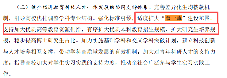 其中有一条很值得高考生和家长们关注:强化标准引领,适度扩大“双一流”建设范围。