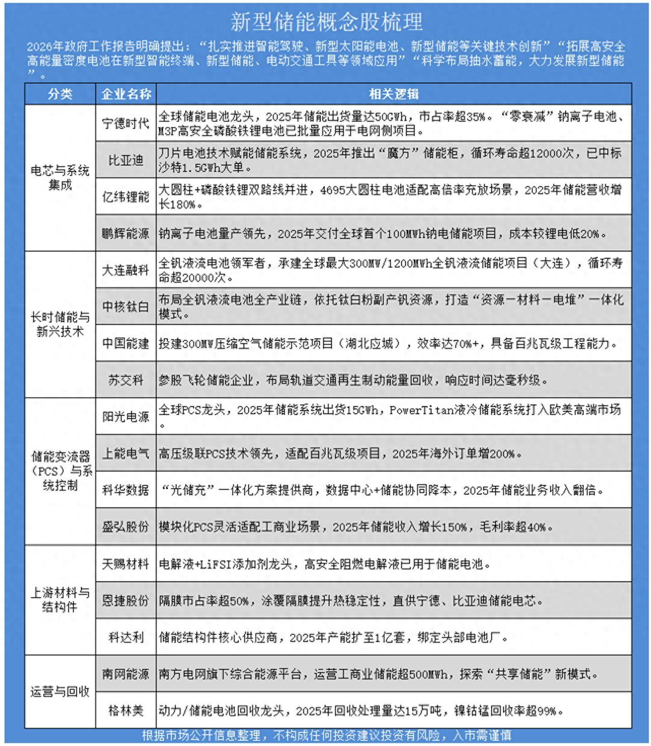 与此同时,高安全、高能量密度电池技术突破,正推动储能应用场景从电网侧向智能终端(如AI眼镜、机器人)快速延伸。一场覆盖材料、电芯、系统集成、回收利用的全产业链革命已然开启。据中关村储能联盟预测,2026年中国新型储能新增装机将超100GWh,市场规模突破2000亿元。