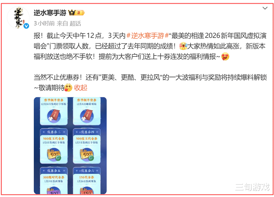 谁也没想到,一款游戏的跨年演唱会,在公布了仅仅三天时间后,预约人数就超过千万。创造这一奇迹的,是网易《逆水寒》手游即将上线的“最美的相逢”2026新年国风虚拟演唱会。