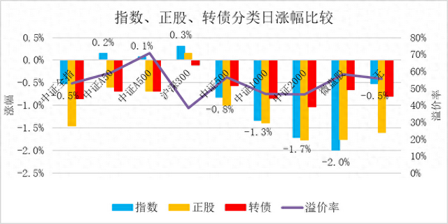 超大盘转债下跌0.41%,低风险转债小跌0.11%,最为抗跌。