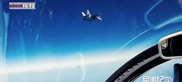 歼-15战斗机从山东舰滑跃起飞之后,翱翔于解放军舰队上空。随后,在不远处遭遇了外机。从歼-15的驾驶舱视角可以清楚看到不远处的一架外机,双发、双外倾垂尾以及机头的大边条的特征,足以证明其是美军的“超级大黄蜂”舰载机。