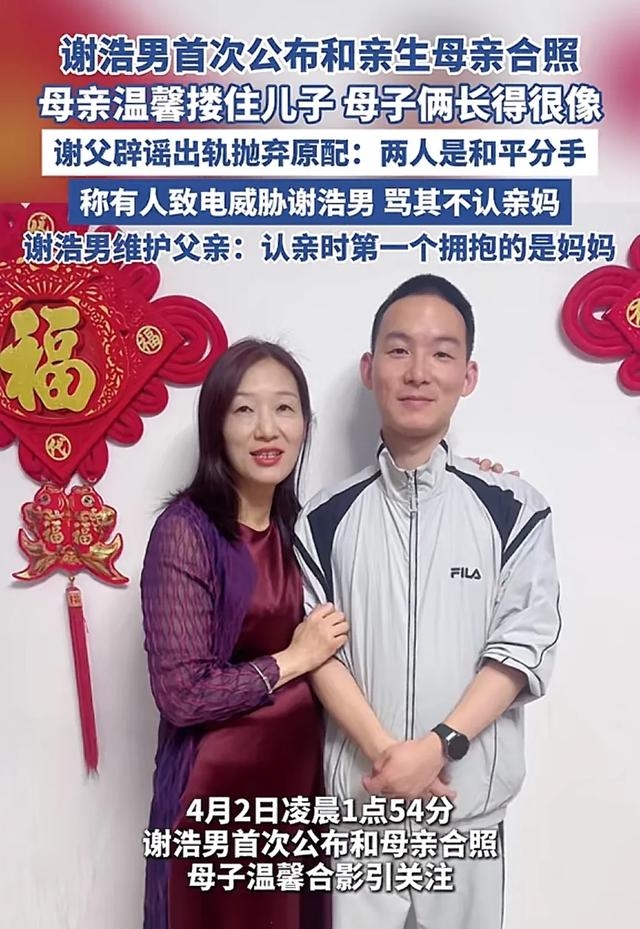 4 月 2 日凌晨快两点,谢浩男突然发了张和妈妈的合照。照片里母子俩在深圳湾公园手拉手,许建华笑得特别开心。配文写着:“认亲当天第一个抱我的是妈妈。” 这条动态一下子就火了,网友们都说:“这照片可比啥解释都有用!”