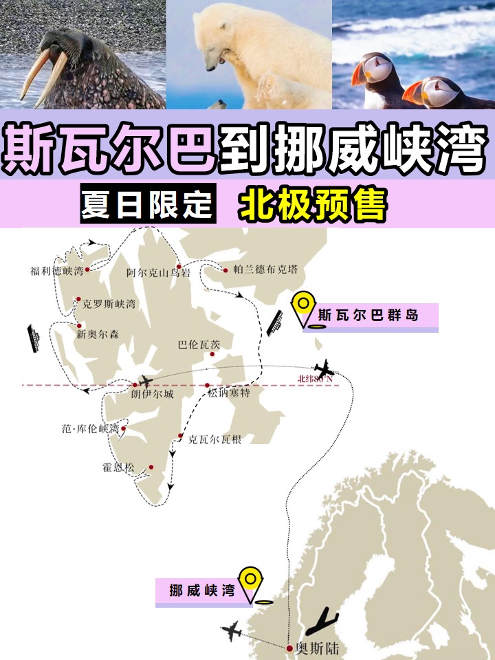 北极进阶玩法,斯瓦尔环岛叠加挪威峡湾,探索北极浮冰,追踪北极熊,见证极北之地的夏日生机,漫步挪威首都奥斯陆,感觉挪威风光。