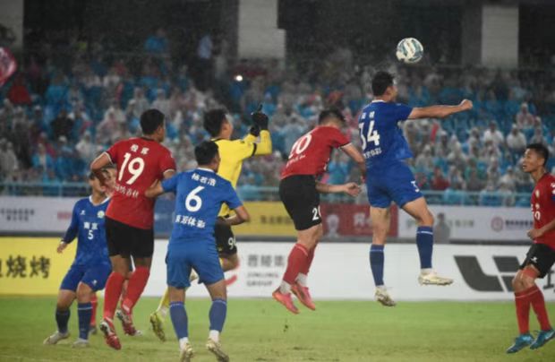 常州队没有放弃。第87分钟,当记分牌定格0:4,常州奥体中心被暴雨笼罩成灰蒙蒙的幕布。常州队19号前锋张子寅带球突入禁区,南京队三名后卫如铁索般封堵。电光石火间,他左脚一扣晃开角度,在身体倾斜30度的极限姿态下拔脚怒射,皮球如炮弹般砸中远端立柱!全场3.6万球迷的叹息声被雨声吞没,张子寅跪在积水的草皮上,双手狠狠捶向水面,溅起的泥浆糊满了他的球衣号码。第89分钟,常州队开出角球,替补登场的33岁老将潘龙斌从人缝中猛然跃起。常州球迷的欢呼声尚未爆发,边裁的旗帜已如刀锋般举起——越位!潘龙斌扯着湿透的衣领冲向裁判,雨水顺着他脖颈暴突的青筋滚落,最终却只化作一声淹没在雷声中的嘶吼。