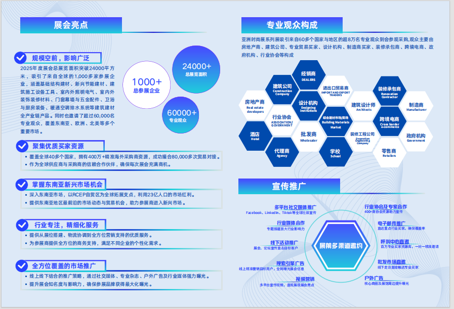 借力亚洲建材展,抢占区域先机,提前布局渠道与品牌影响力,才能在未来的国际市场竞争中赢得主动权。
