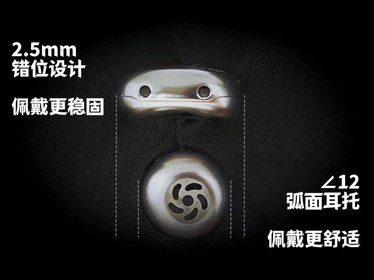 采用独特的C形桥设计,结合人因工程学造型,单耳重量控制在5.6g,完美贴合耳廓曲线,压力分布均匀,长时间佩戴都没有夹耳感。