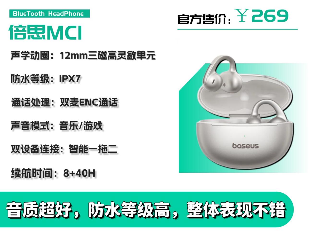 推荐理由:佩戴轻盈无压,音质均衡耐听,通勤运动场景都适配