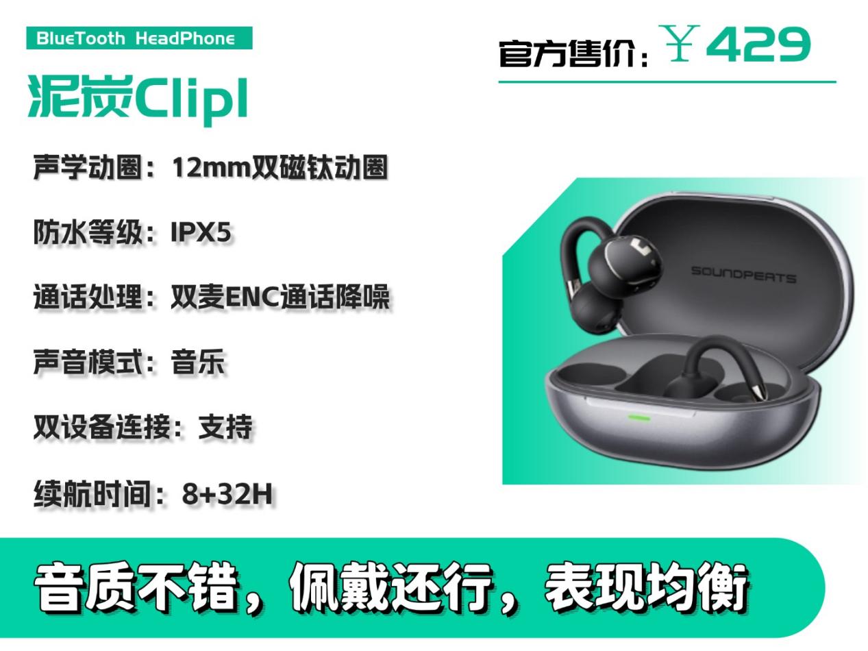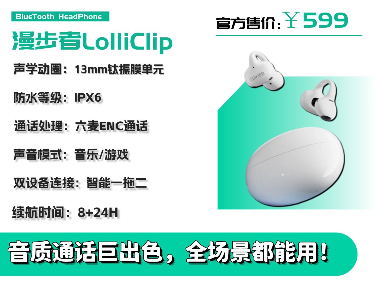 漫步者 Lolli Clip价格:599元推荐理由:通话降噪实用,空间音频加分,办公通勤都适配