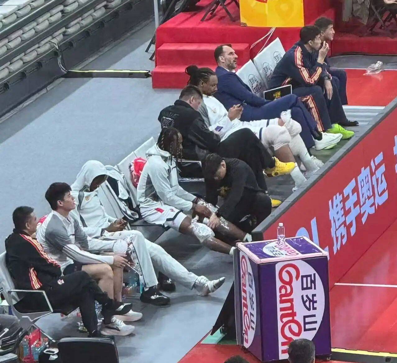 赛后同样也在冰敷的还有麦考尔和萨林杰,麦考尔双膝缠满冰袋,萨林杰膝盖和脚踝也都绑上了冰袋,麦考尔这一场比赛发挥挺挣扎的,能明显看出启动速度没有上赛季快,期间多次想靠变向突破过掉约翰逊和史密斯,但效果都不理想。