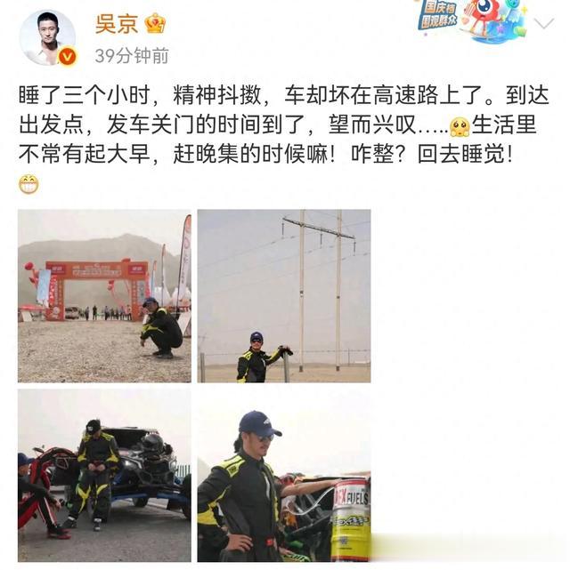 5月23日,一向很低调的吴京,突然在社交平台无奈发文称:“睡了三个小时,精神抖擞,车却坏在高速路上了。到达出发点,发车关门的时间到了,望而兴叹…..生活里不常有起大早,赶晚集的时候嘛!咋整?回去睡觉。”