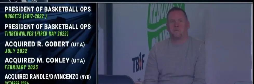 森林狼晋级在望,镜头对准了看球的球队总经理康纳利,无疑在向他致敬。