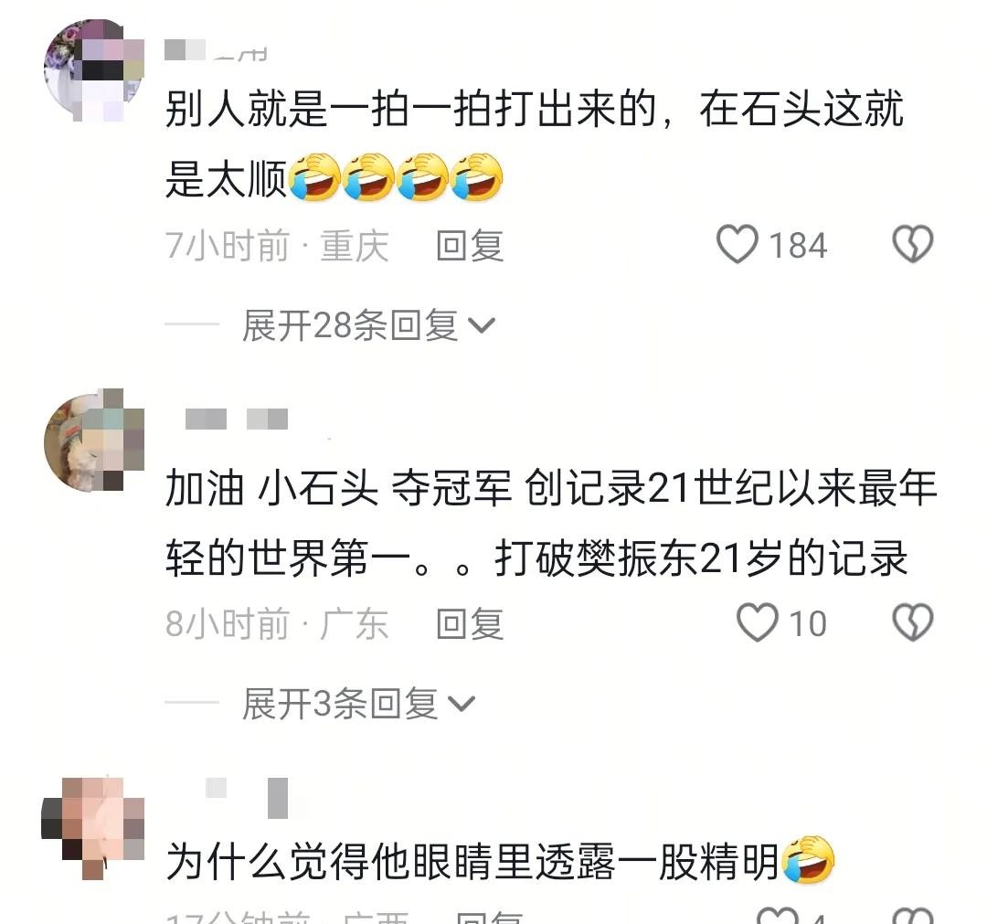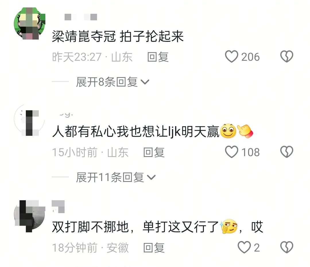 网络上,风向却变了! 评论区一片哀嚎,不少网友表示,如果林诗栋拿到冠军,他们就支持世界第二!这画风,是不是有点清奇?为啥呢?因为大家更爱王楚钦! >“梁靖崑明天给我支棱起来!” >“我自私,想让甜甜(王楚钦昵称)赢到底,保住王楚钦的世一!” 各种评论五花八门,但核心思想只有一个:我们更喜欢王楚钦!