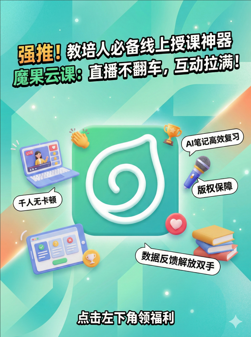 线上授课的有效推进离不开优质工具,选对适配工具可降低教学成本、提升效率,帮助教培从业者少走弯路。