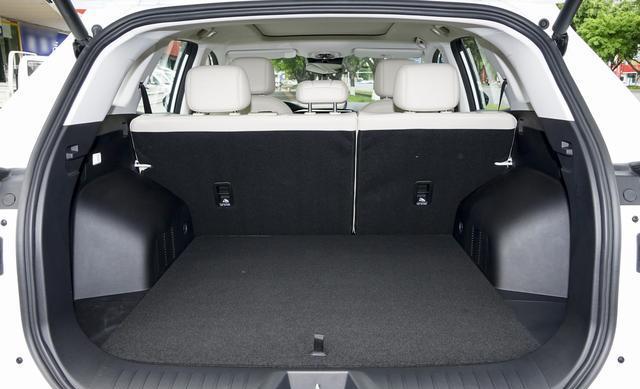 5座版后备箱初始容积518L,地板纯平,可容大量物品。放倒后排靠背后,容积增至1556L,满足一两人自驾游需求,能装载帐篷、山地车等大型生活用品。