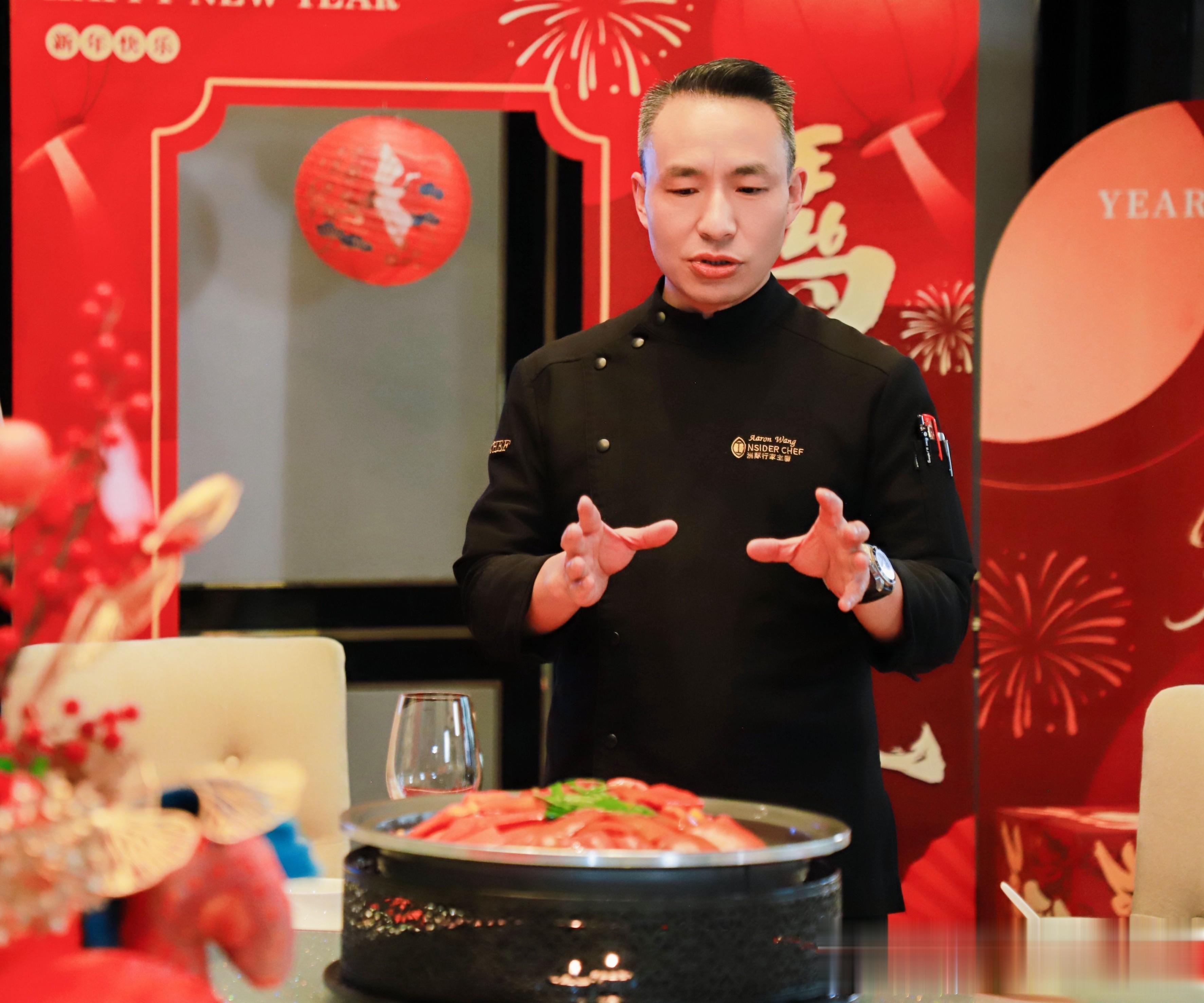品鉴会现场,行政总厨王杰为大家带来招牌特色菜红果小牛肉,取澳洲和牛丰腴与细嫩部分,以长达三小时的古法蒸制,锁住本味与精华。点睛之笔在于酱汁的融合哲学:意大利黑醋的深沉酸韵邂逅四川陈皮的柑橘陈香,再融入烤制蔬菜的复合甘甜。一筷入口,不仅融汇了东西方风味的碰撞,更是对红火、团圆的口感演绎。