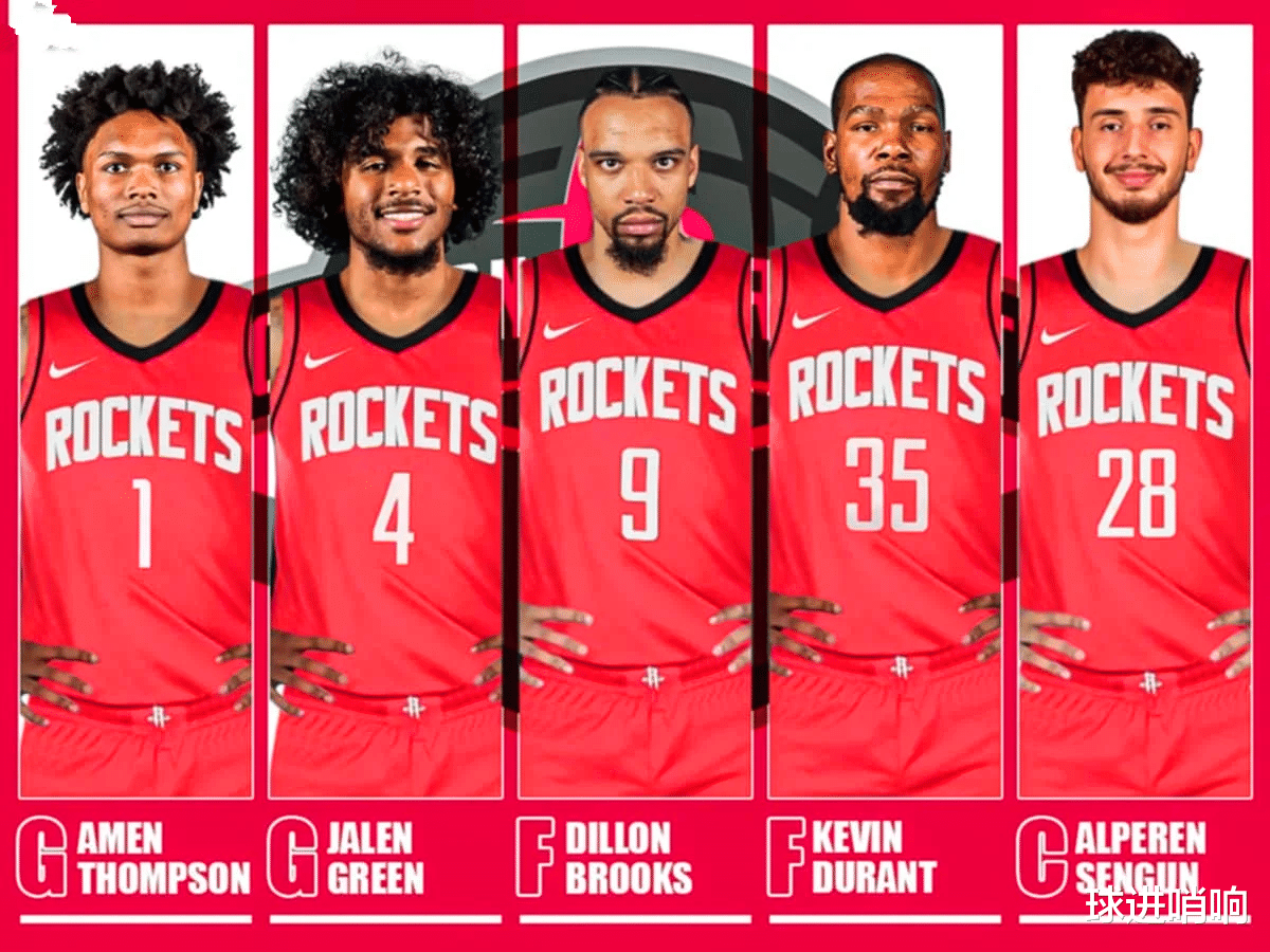 火箭队留下了大部分核心球员,将摆出阿门+杰伦格林+狄龙+杜兰特+申京的豪华首发。