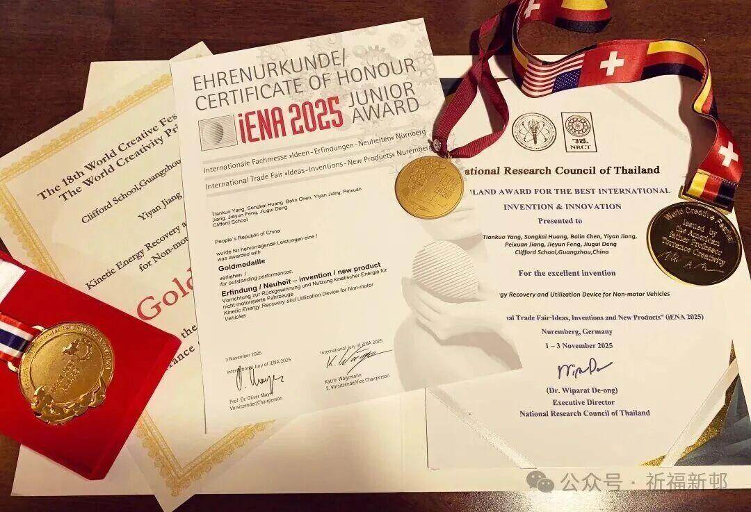 被誉为发明界“奥斯卡”的全球三大发明展——德国纽伦堡国际发明展、瑞士日内瓦国际发明展及美国匹兹堡国际发明展,是全球创新成果展示的最高殿堂。今年,祈福学子在这两项顶级赛事中表现极为耀眼。