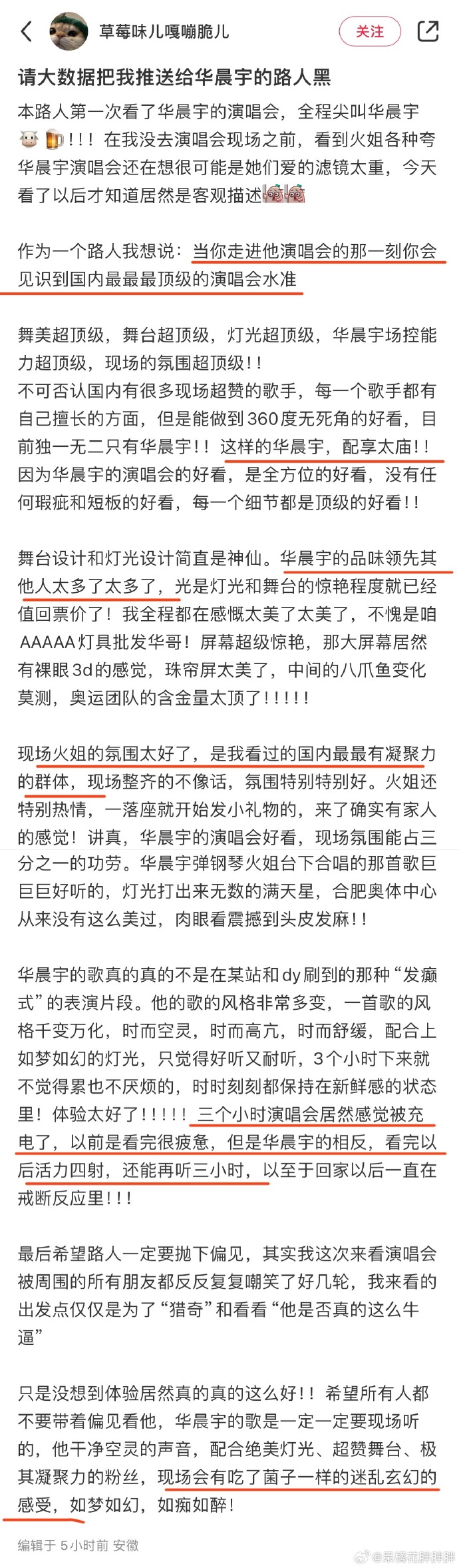 火星演唱会的口碑爆棚,新歌《特修斯的船》、《怪诞心理学》更是火遍全网,网友纷纷模仿手势舞。华晨宇透露,重庆站将有更多新歌首唱,让人充满期待!