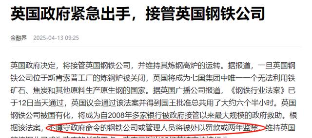 【1】环球网——《英国称将从中国企业手中接管英国钢铁公司,外交部回应》2025.4.14。