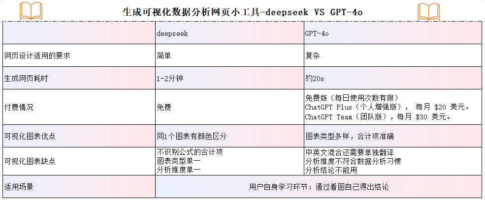 虽然deepseek和GPT-4o生成数据分析可视化网页工具只适合用于自己学习,感觉还挺可惜的,但是在这个模型开源时代,惋惜只是徒增烦恼,毕竟模型版本更新是必然的,且节奏会越来越快。