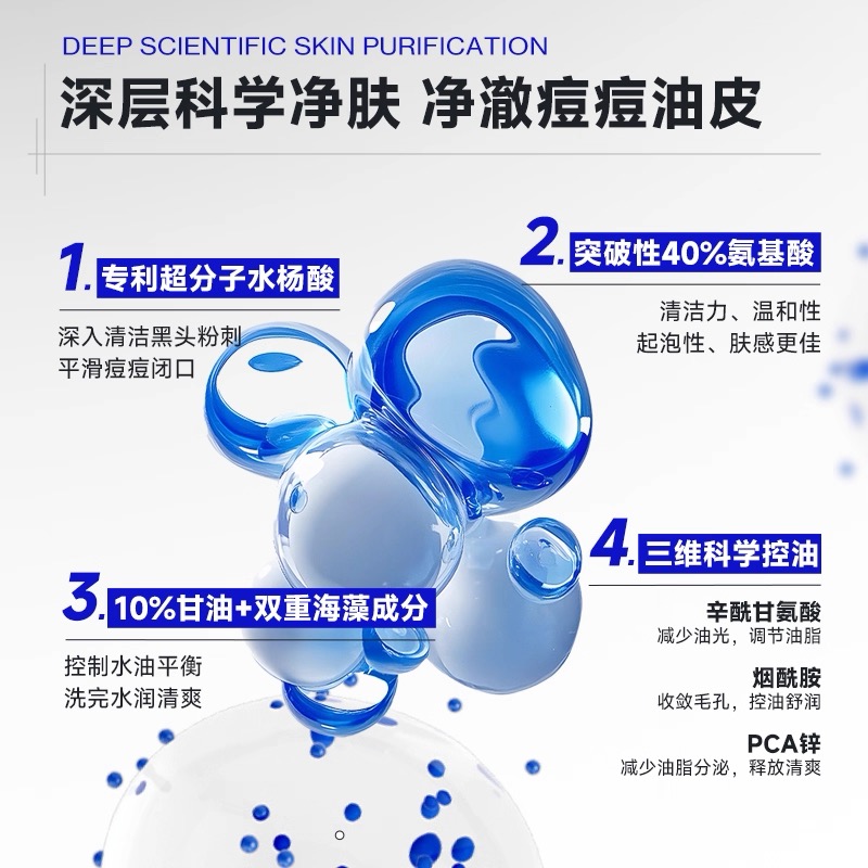 真实用户案例1(学生党油痘肌):“大二学生,T区油痘严重,用这款洁面3周,痘痘明显变少,T区出油也控制住了,洗后不紧绷,59.9元/150g的价格很亲民,学生党表示无限回购。”案例2(上班族混合油皮):“日常通勤需涂防晒,这款洁面直接就能卸干净,不用额外卸妆,洗后清爽不泛油,早上用了到下午下班T区才轻微出油,比之前用的洁面控油效果持久太多。”案例3(油敏肌):“皮肤容易泛红,之前用很多洁面都会刺痛,这款用着完全没问题,泛红也减轻了,泡沫很绵密,冲洗方便,夏天用着特别清爽。”