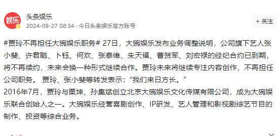 然而就在2024年9月27日,这对好姐妹却纷纷与公司“切割”,一个合约到期一个专心导演不干涉管理,只留下一句令人浮想联翩的“我们来日方长”。