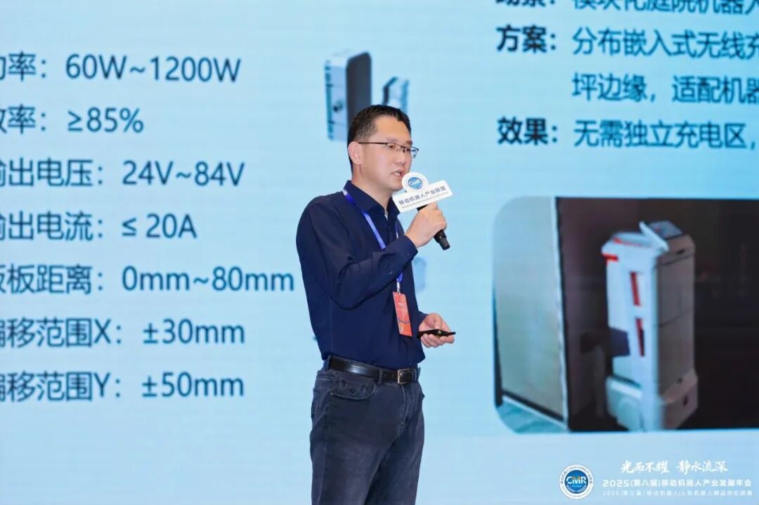 核心内容:杨国勋在演讲中阐述了无线充电技术如何引领移动机器人行业进入“无感补电”新时代。当下,“无线充电+”解决方案正实现“遍地开花”,赋能京东物流、无人零售车、机器狗、配送机器人等多元终端,覆盖商业服务、医疗、快递等多个场景。通过展示广泛的多场景投放策略,公司凸显了无线充电在提升机器人运维效率和自动化水平方面的核心价值。