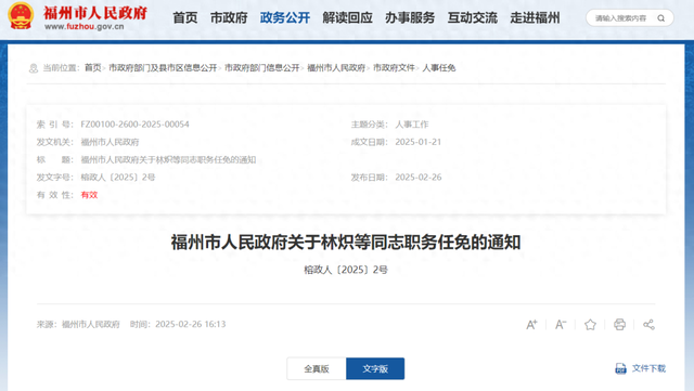 林炽同志任福州市软件园管理委员会副主任(试用期一年);