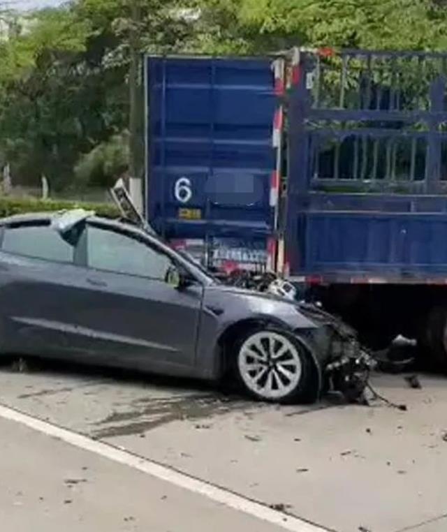 一辆黑色特斯拉Model 3如同离弦之箭,以肉眼可见的高速撞向停靠的货挂车底部!
