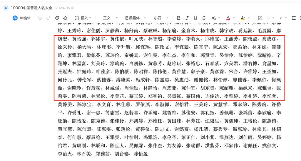 百度文库《10000中国普通人名大全》文档。