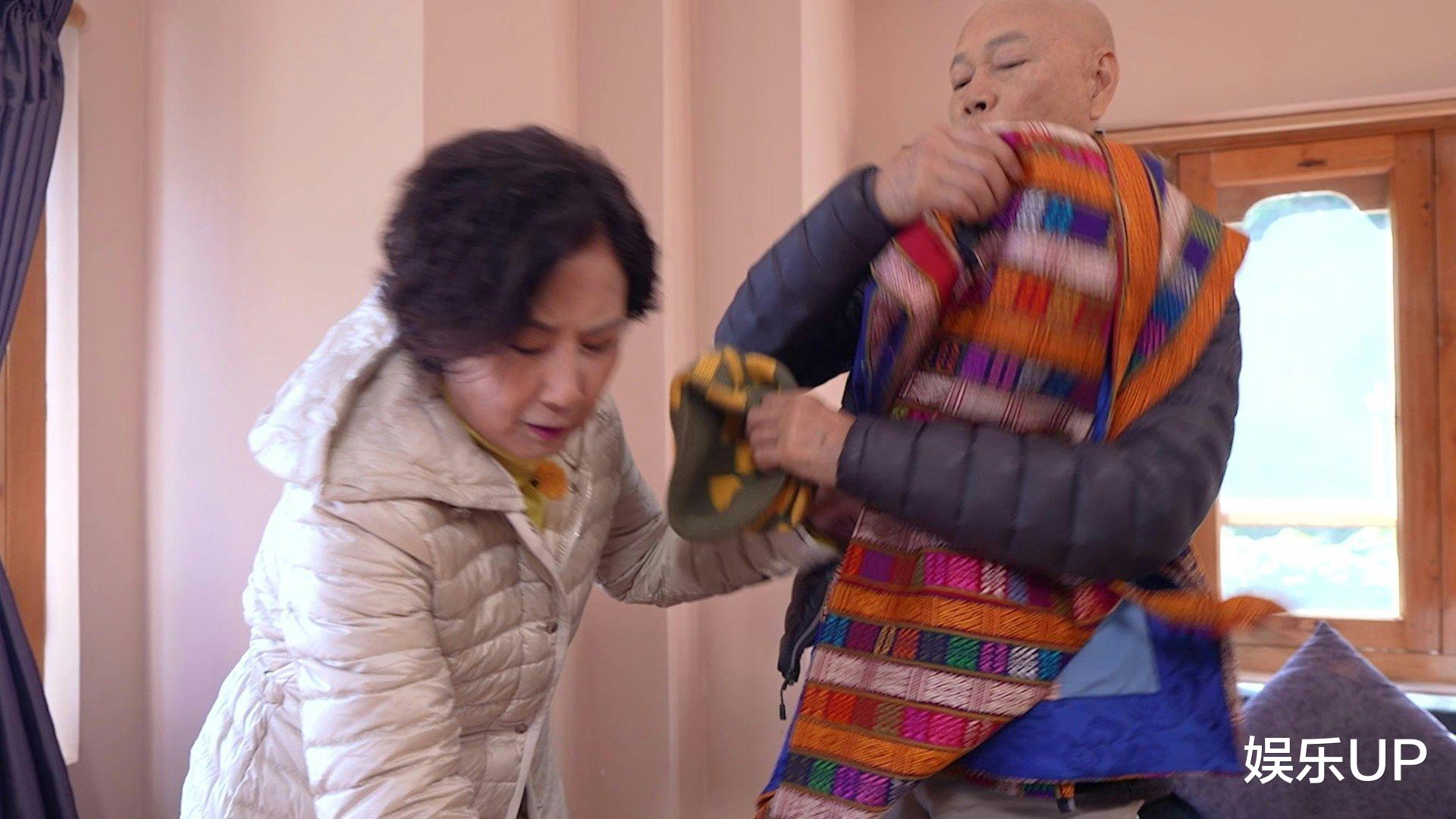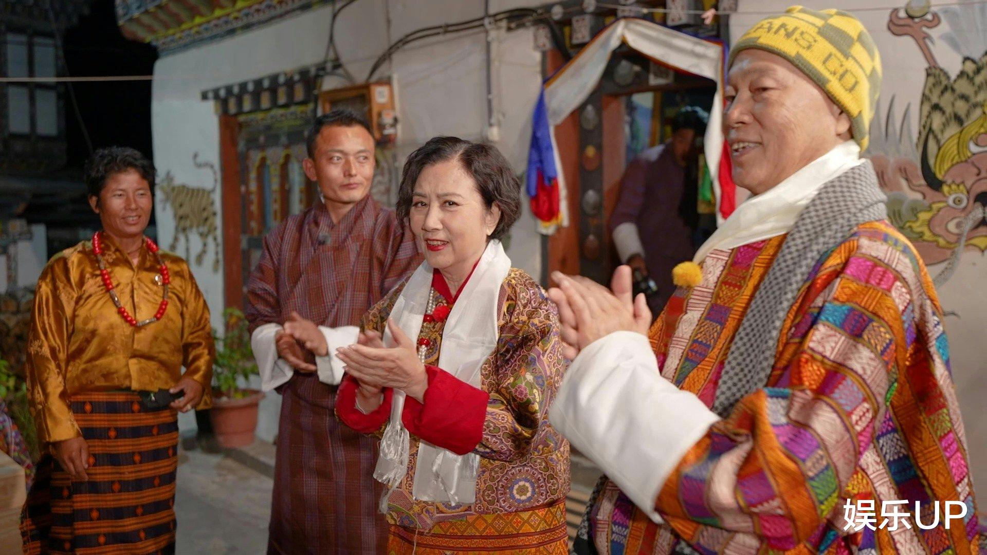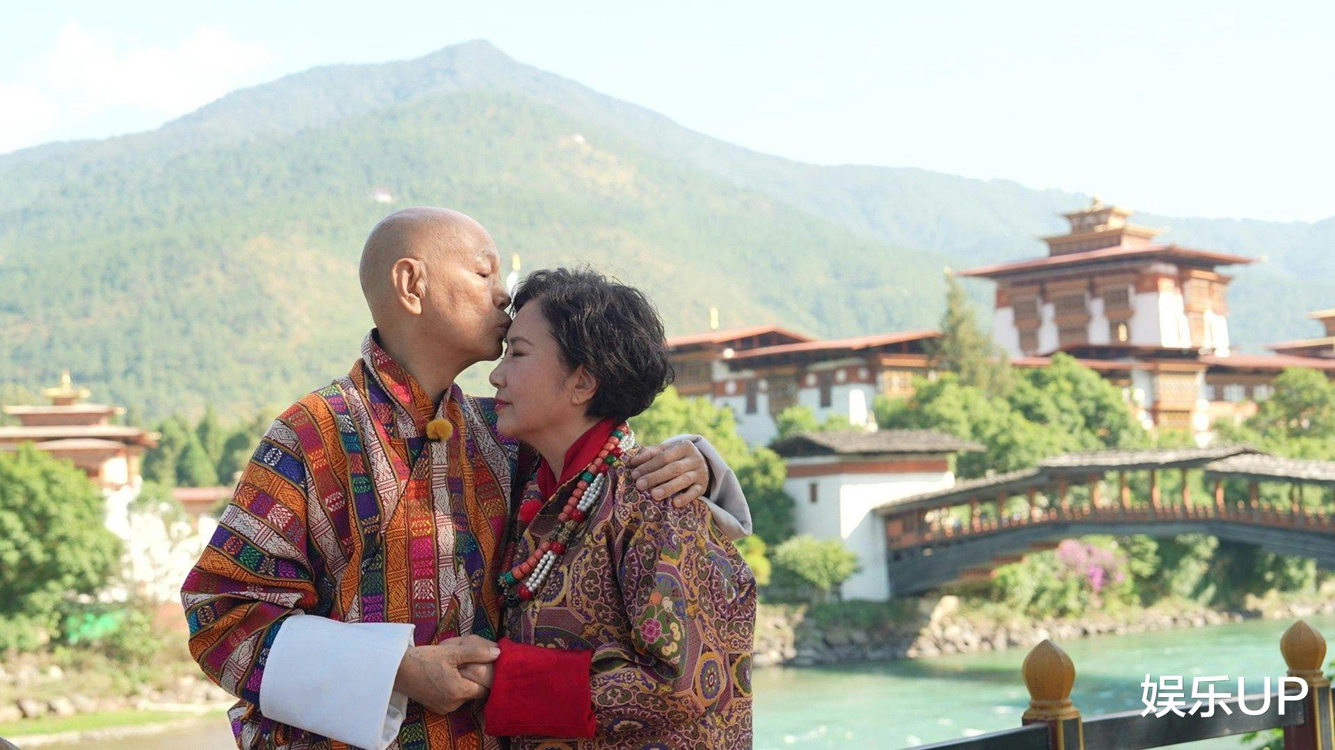 节目组特别呈现了夫妻二人穿着不丹传统礼服补拍婚纱照的珍贵场景。接受甘露水、黄米饭等祝福仪式时,汪明荃难掩欣喜之情,而罗家英则全程细心搀扶。尽管相伴数十载,两人互动仍保留着新婚般的默契与鲜活感,比如汪明荃提到丈夫总爱即兴发挥时,眼神里既有无奈又带着纵容。