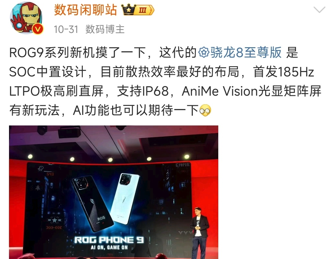 当然了,除了Mate70系列之外,其他厂商也是新技术新机频出,天玑9400、骁龙8至尊版的不少旗舰机型都是看点满满,除了前头已经发布的荣耀Magic7系列、小米15系列已经上线,后续还有搭载骁龙8至尊版的新机即将登场,而且各方面配置都很有看头,像ROG游戏手机9就是其中一个典型的例子。