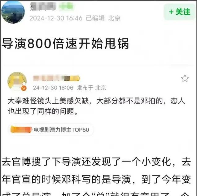 更令人唏嘘的是,导演邓科也开始与该剧保持距离,其头衔从“导演”悄然变为“总导演”。