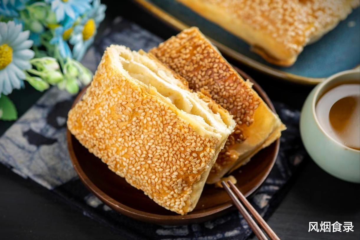 裹上油酥叠成“千层”,再包馅、撒芝麻,200度烤20分钟,出炉时香飘半条街!