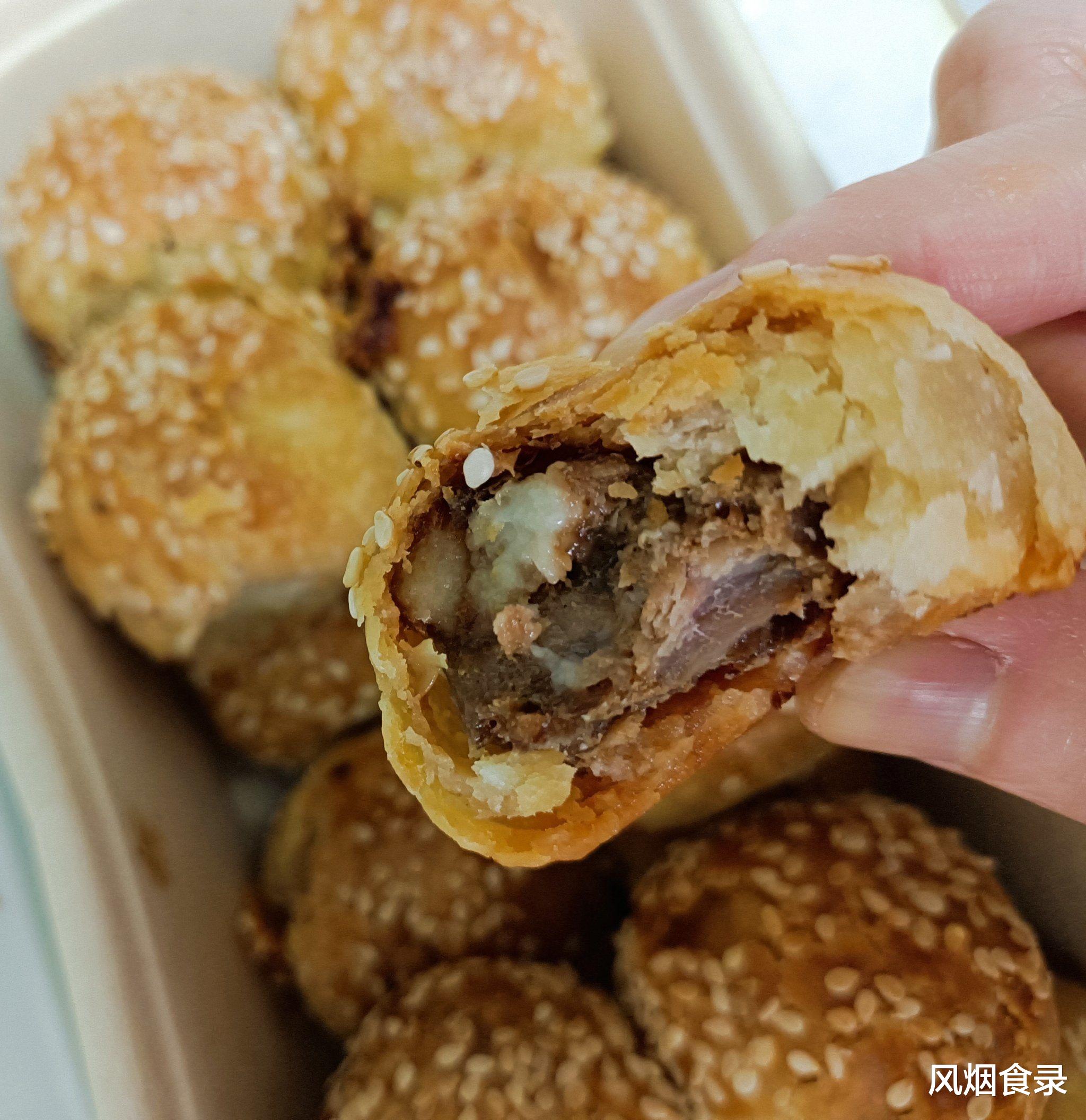 猪油、香油和面,层层起酥,馅料有猪肉、豆沙、糖等,烤得金黄冒油,咬开满嘴香。
