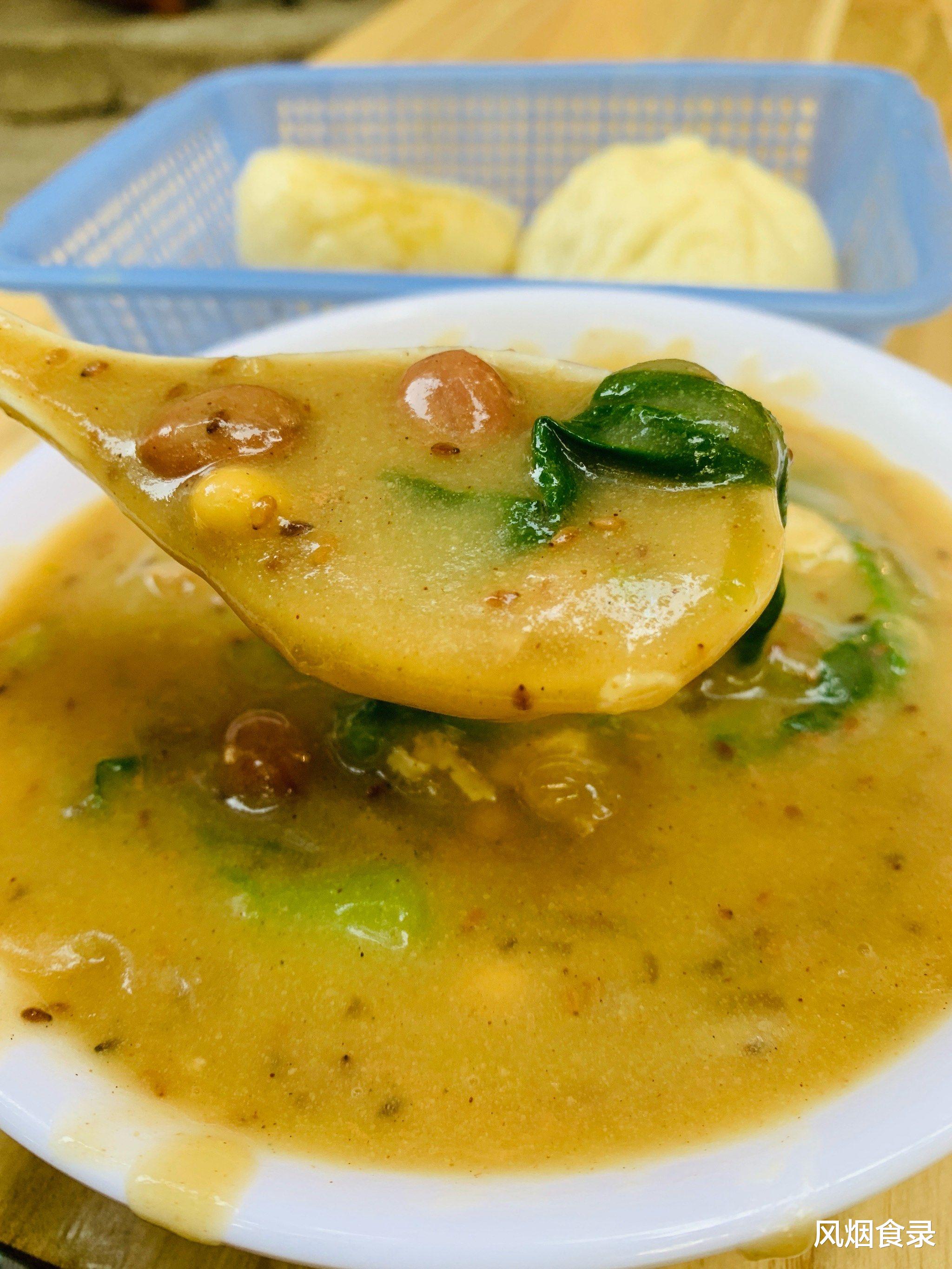它不是豆面做的,偏用磁山小米,因着中原人骨子里“实诚”二字,熬得稠、磨得细,连花生都得脆生生,黄豆要煮得面乎,才够味。