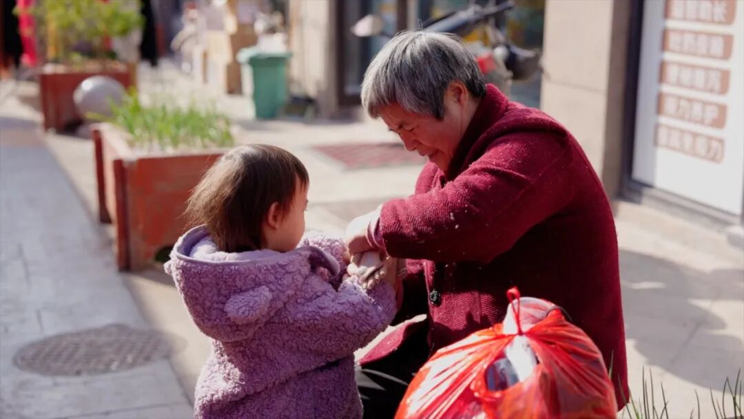 漫步在集市中,我们看见了两位在路边偶遇的老人,他们兴奋地站在人潮里相互问候,脸上洋溢着老友重逢的喜悦。也看到带着外孙女来逛集市的老人家,小女孩买到心仪的手套,便迫不及待靠在路边就要戴上。