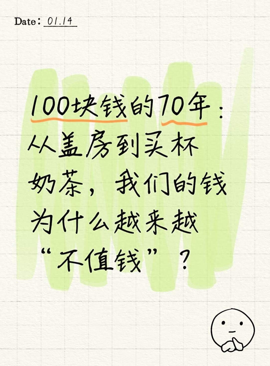 70年前,100块能盖房,是因为我们需要“活下去”;现在,100块能买奶茶,是因为我们想要“活得好”。