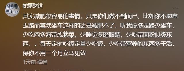 其实减肥很容易的事情,只是你们做不到而已,比如你不愿意走路而喜欢坐车这样的话是减肥不了,听我说多走路少坐车,少吃肉多海带或紫菜,少睡觉多磨眼睛,少吃碳水。