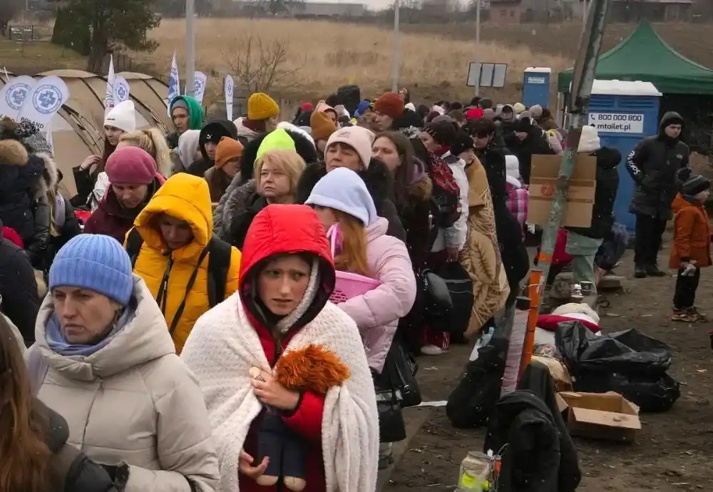 俄乌冲突中,一名乌克兰女性带着幼童逃难,连续三天未进食,幼童因饥饿啼哭不止。