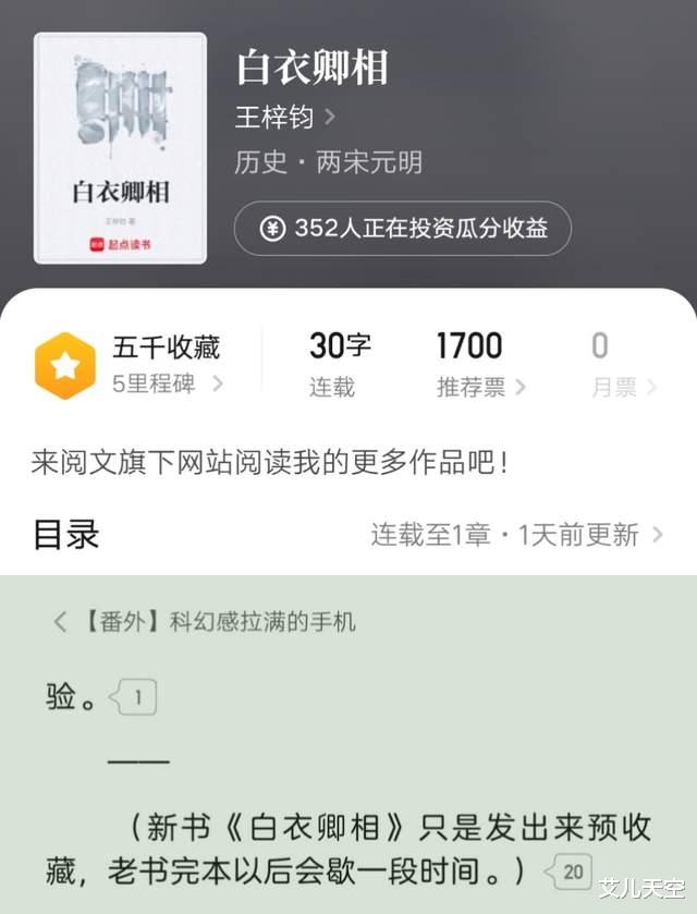 之前上线的历史新书《白衣卿相》确实是配合完结活动的,不过是预收藏,具体什么时候正式更新倒是还不清楚。
