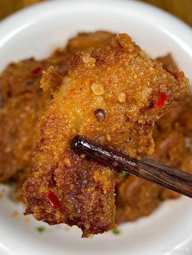 裹粉蒸制:将腌好的肉片均匀裹上蒸肉米粉,确保每一片都裹满米粉,这样蒸出来的肉更加香糯。
