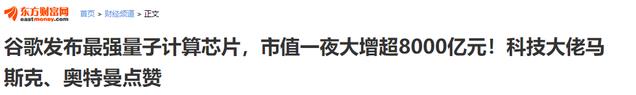 东方财富网——谷歌发布最强量子计算芯片,市值一夜大增超8000亿元!科技大佬马斯克、奥特曼点赞