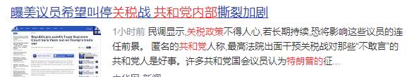 中华网:曝美议员希望叫停关税战 共和党内部撕裂加剧