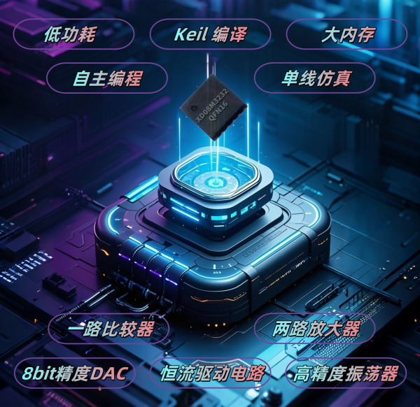 XD08M3232 的外设资源丰富得令人咋舌。自带的恒流驱动电路堪称感应器的 “福音”,解决了光衰问题,使感应器始终保持稳定工作状态。内置的两路轨到轨运算放大器,能够对低幅度的输入信号进行放大,在处理微弱的传感器信号时发挥着关键作用,提高了信号处理的效率和准确性。支持的一路模拟比较器,进一步增强了信号检测精度,简化了电路设计,在复杂的信号环境中也能轻松辨别信号和干扰信号。11 通道 12 位 SAR ADC能够采集各种模拟信号,在连接温度传感器、湿度传感器进行环境监测项目时,采集到的数据精度高,为项目的成功实施提供了有力的数据支持。