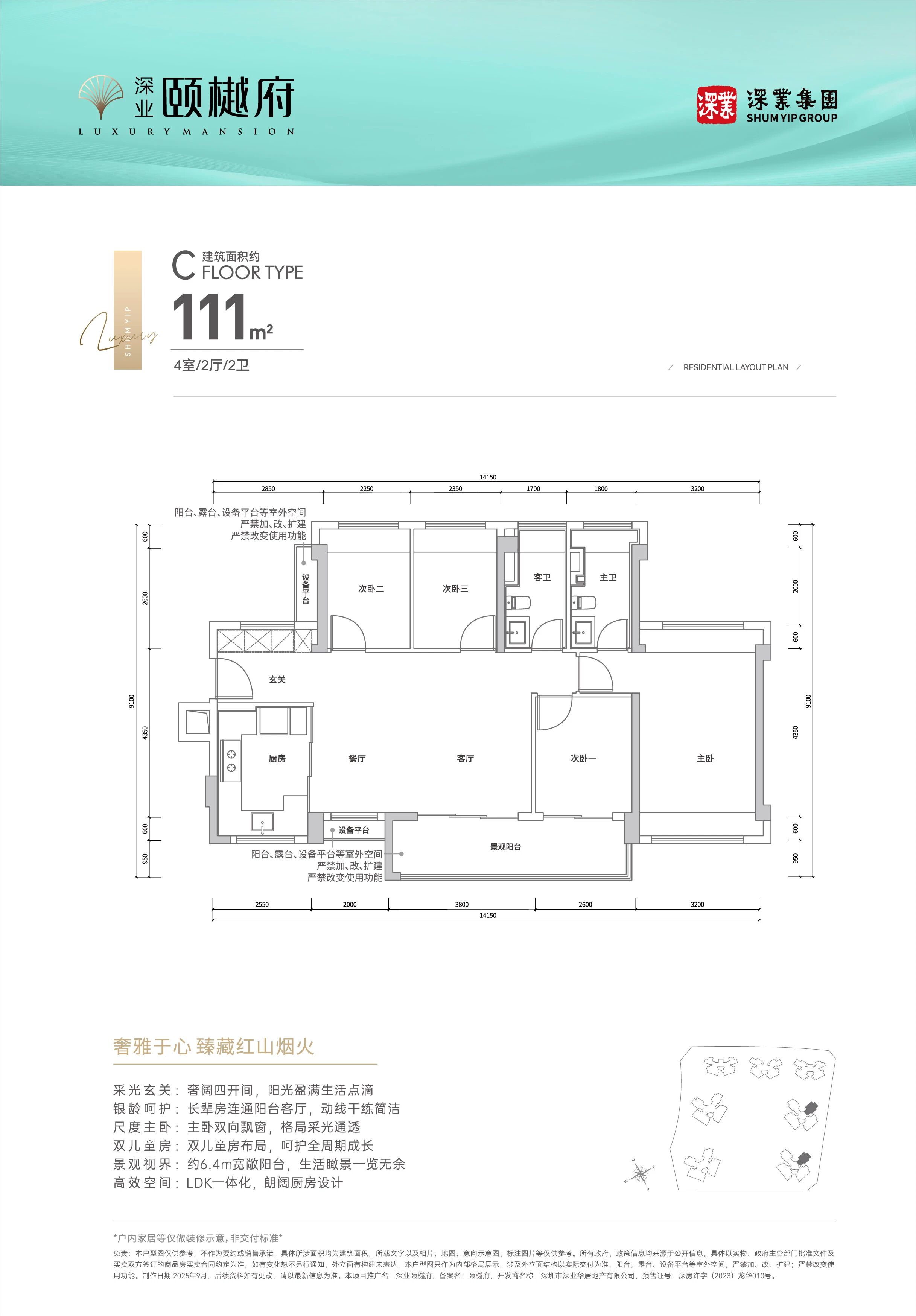 4、本宣传资料中涉及到的所有项目效果图及实景合成图仅供示意参考,不代表开发商对此做出了承诺,买卖双方权利义务以双方最终签署的《深圳市房地产买卖合同(预售)》为准;
